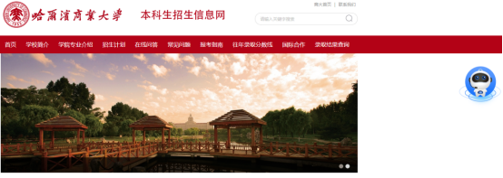 访问方法:一是登录哈尔滨商业大学本科招生信息网,点击首页右上角的机器人图标,如图4所示;二是在浏览器地址栏输入链接:https://answer.eol.cn/fillmess/index?id=1001直接进行访问。